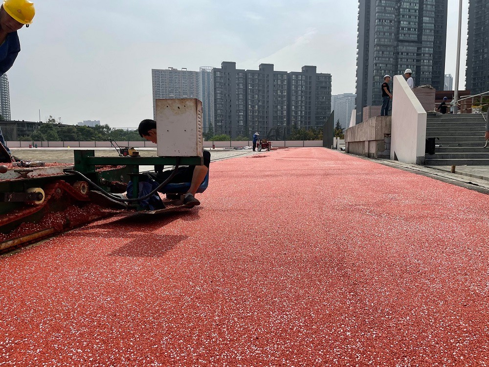 2021年5月6日成都七中八一学校顶层运动场300米透气型跑道底层施工中