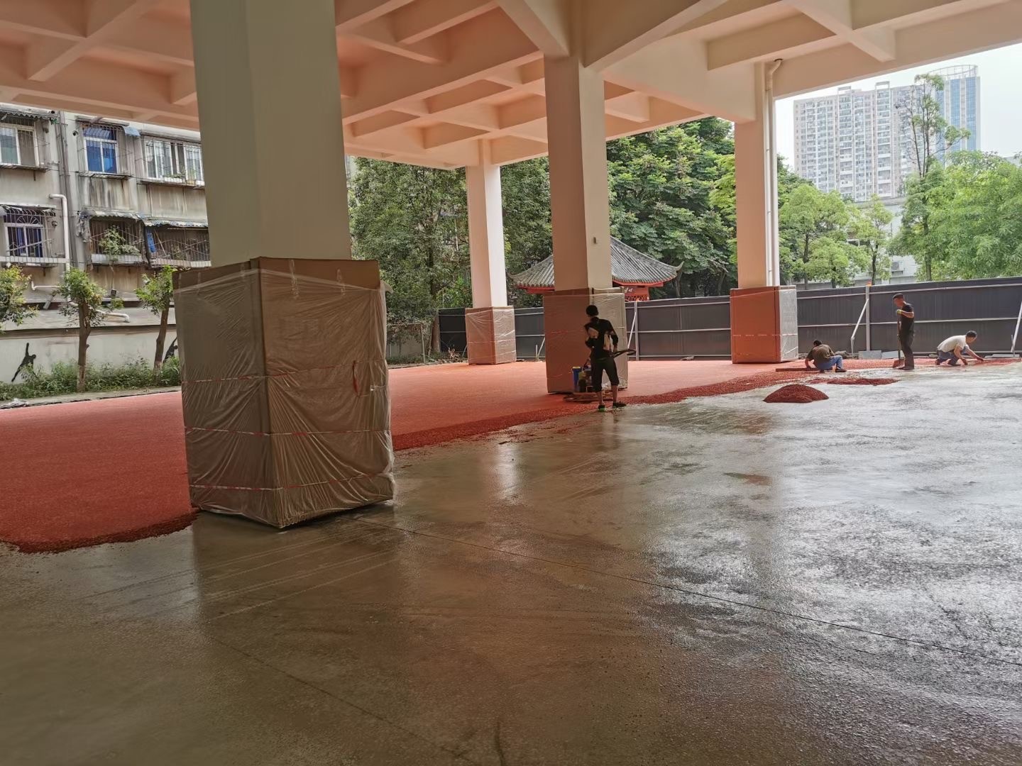 2021年5月29日,成都市七中八一学校的硅PU篮球场施工中.