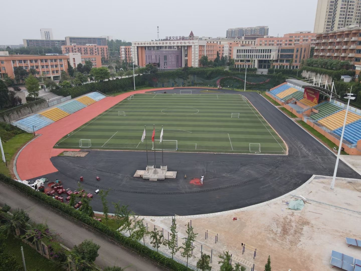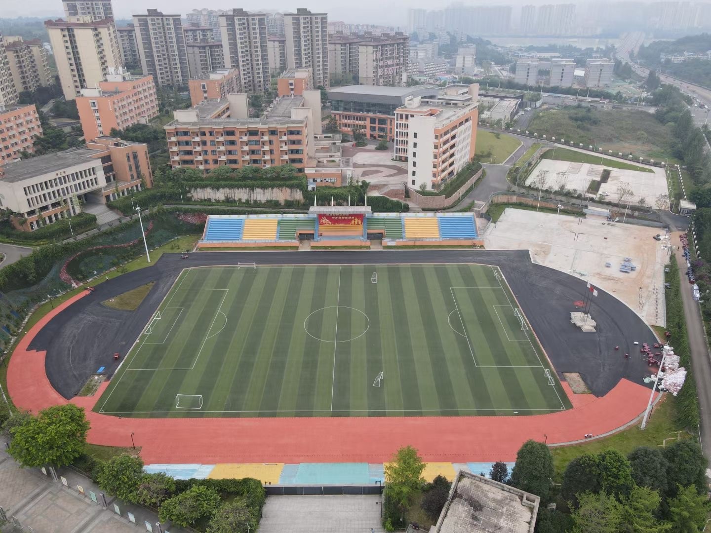 成都七中实验学校(眉山)校区八片硅pu球场,400米塑胶跑道施工中