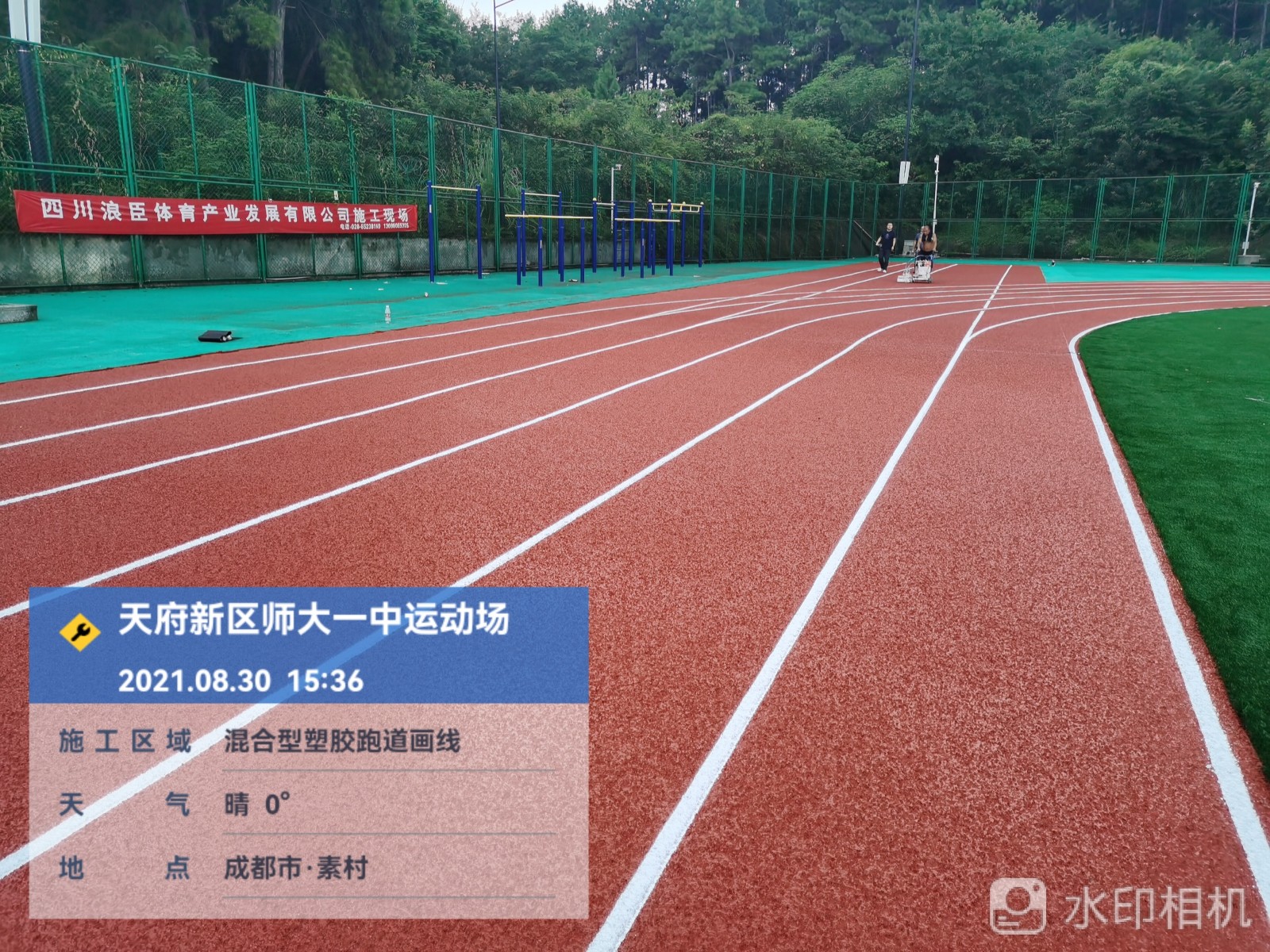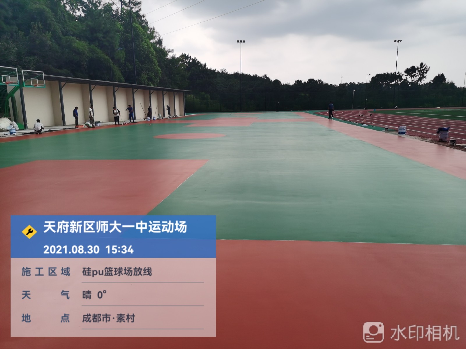 2021年8月30日天府新区师大一中混合型跑道和硅PU球场画线