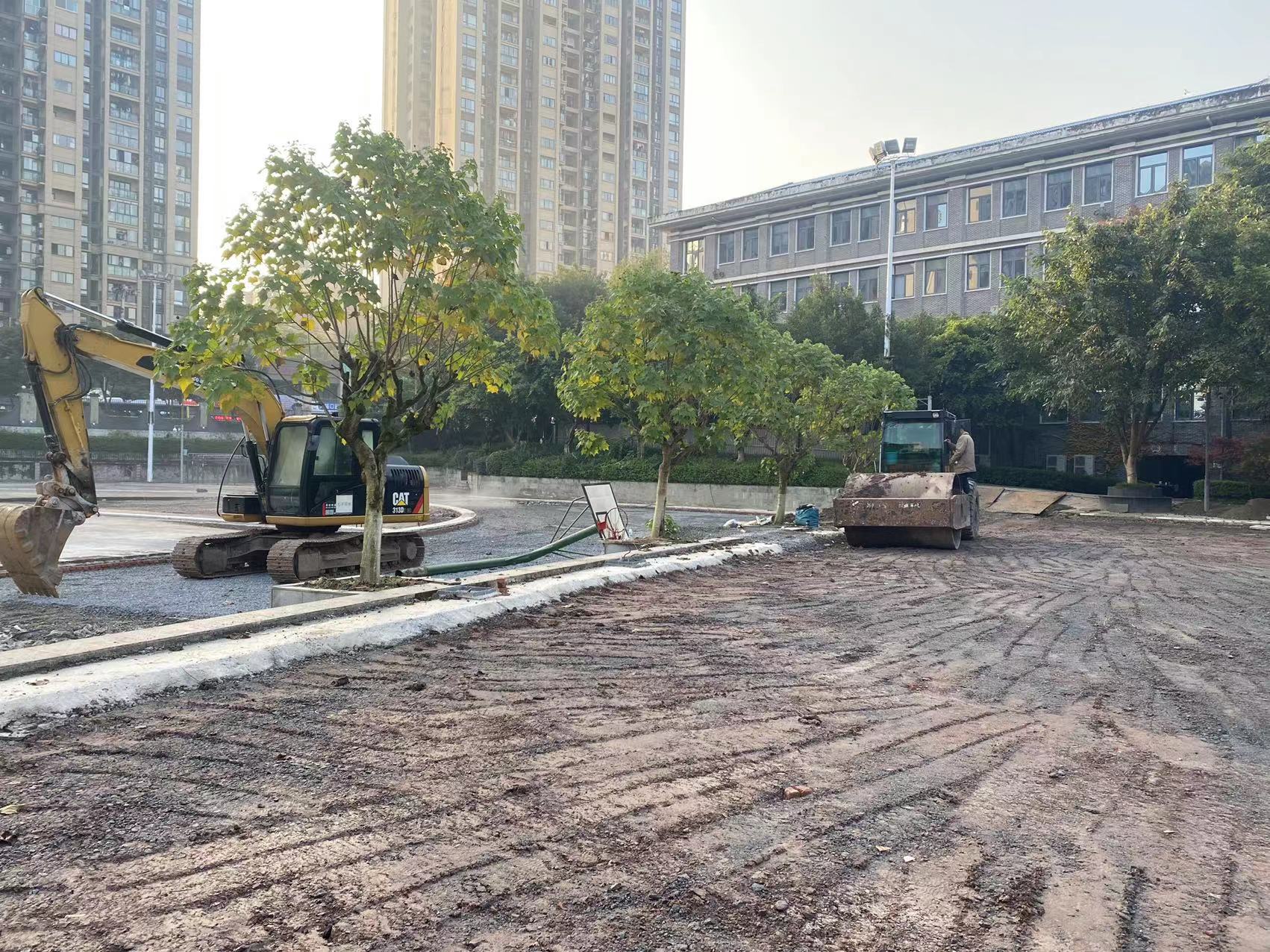2021年11月25日,重庆财政学校400米体育场及附属篮球场土建基础施工中