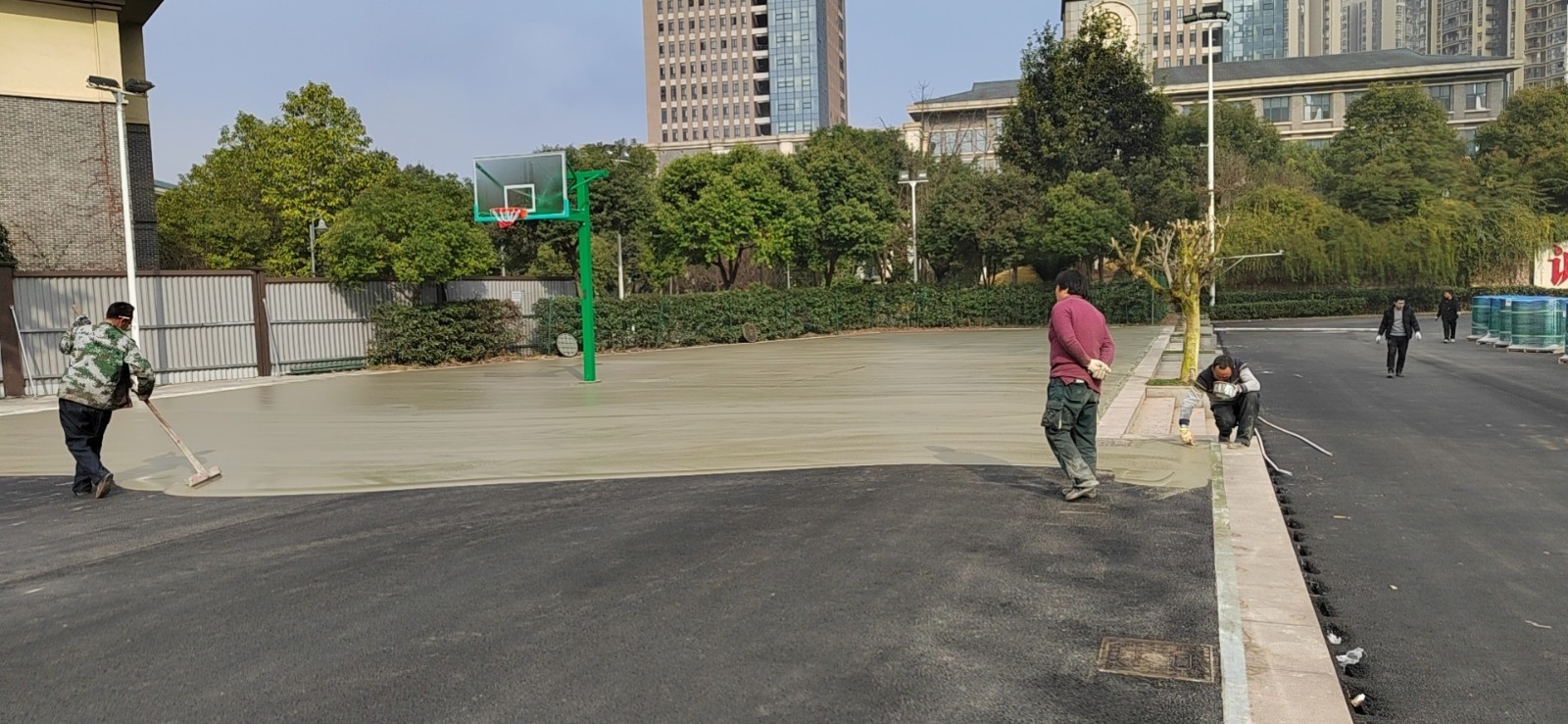 2022年元月5日,重庆市财政学校的4片硅pu篮球场开始封底施工