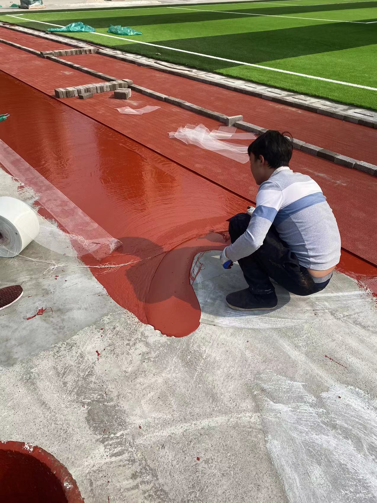 2022年2月14日重庆市财政学校硅pu篮球场弹性层施工中