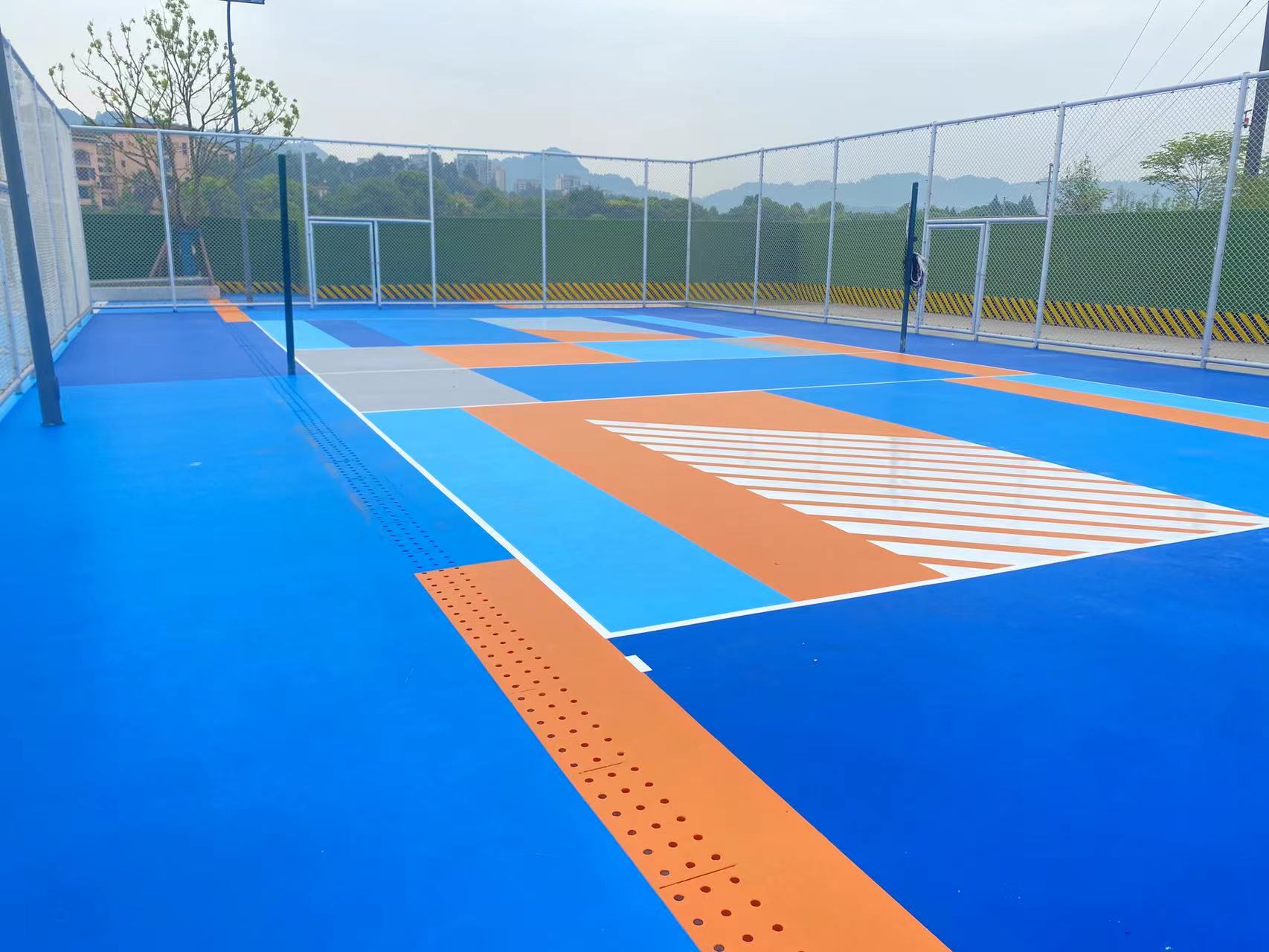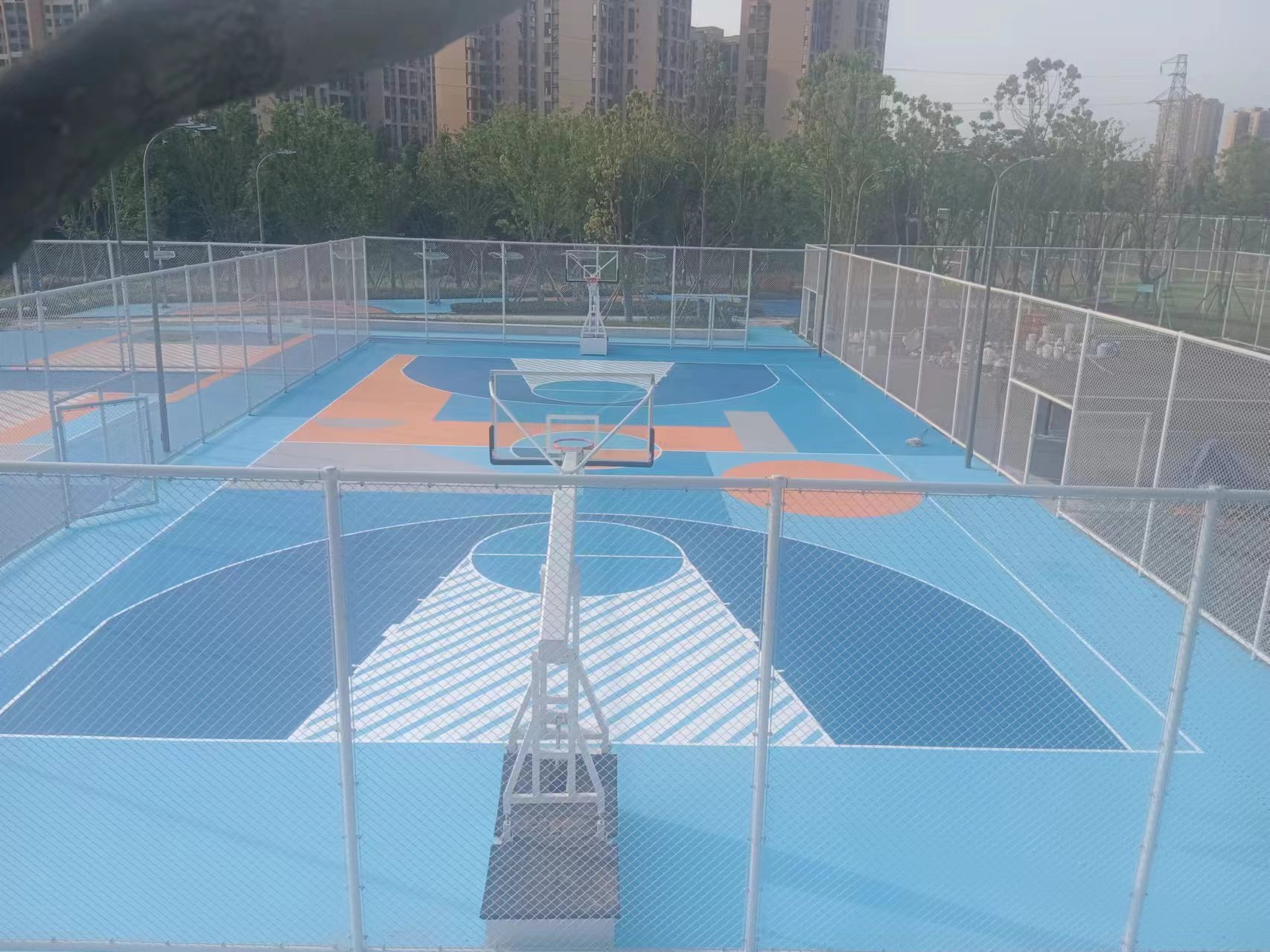 2024年5月6号,我公司承建的蒲江梁江体育公园的多彩硅pu篮球场、羽毛球场、游乐场完工