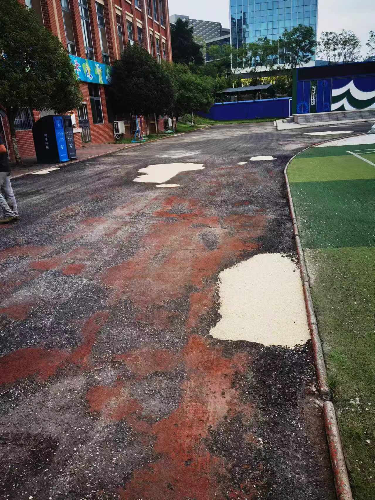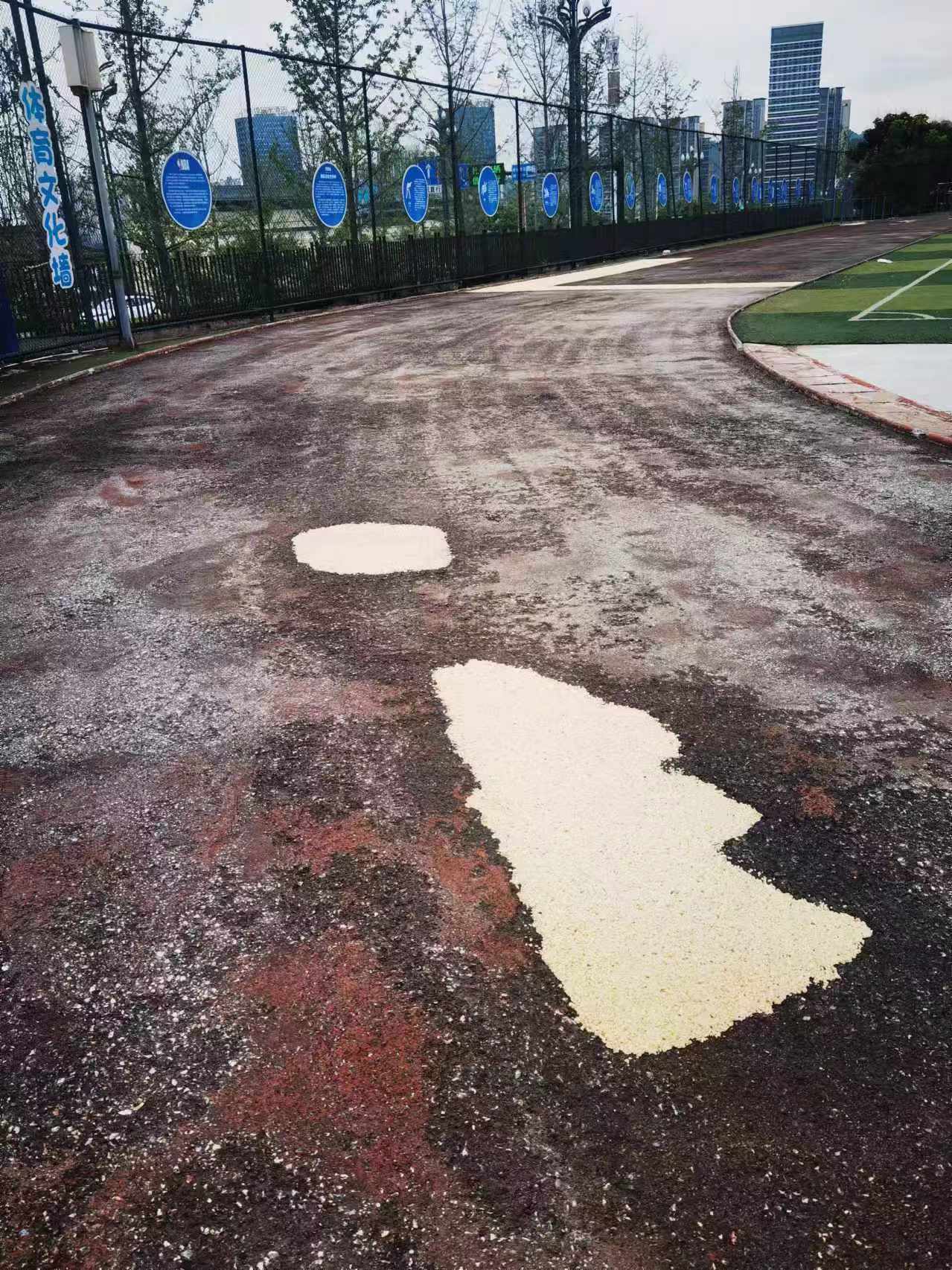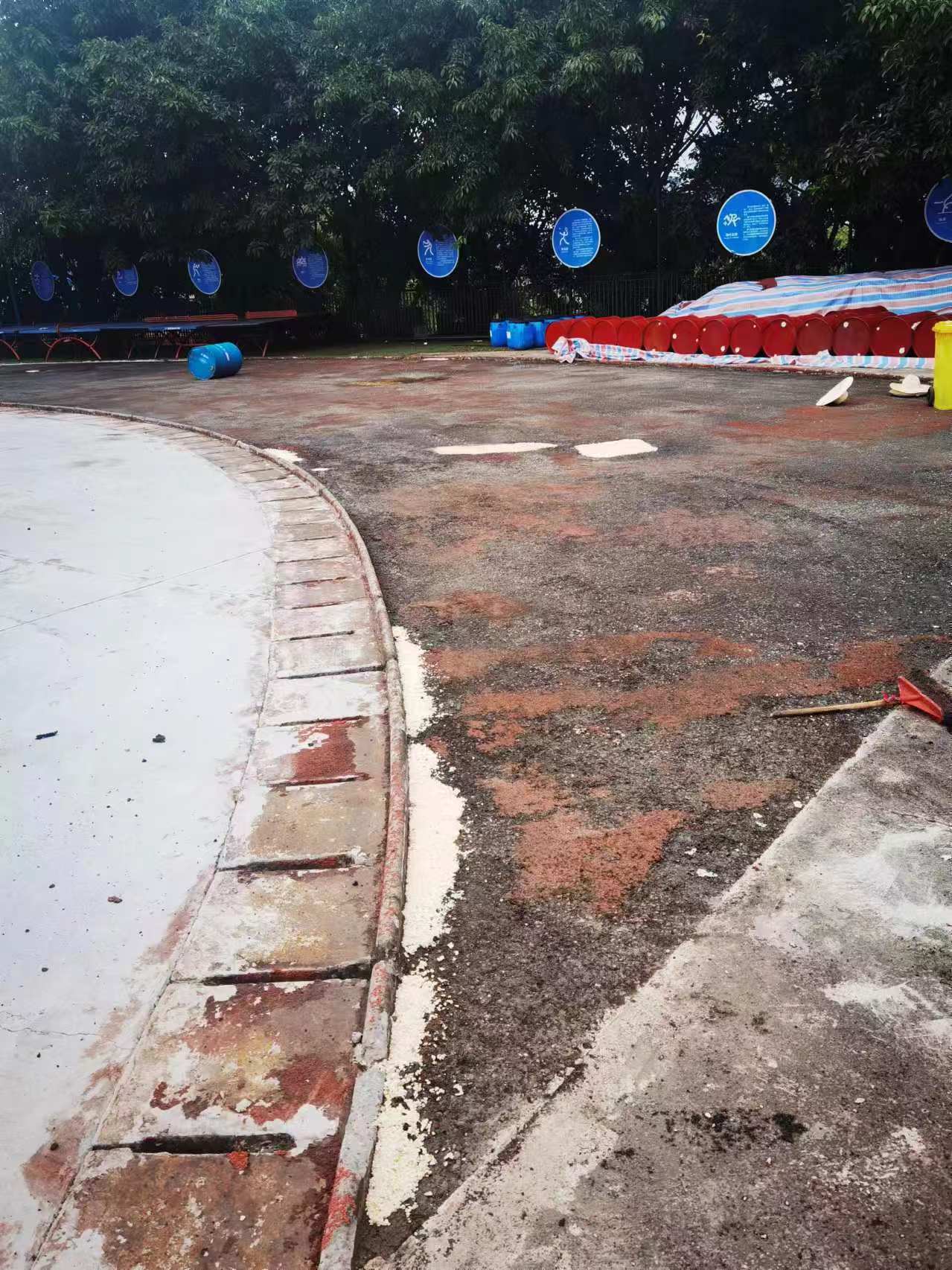 2024年7月25号,宜宾天立国际学校200米运动场原有塑胶铲除完毕,基础修复中准备塑胶施工