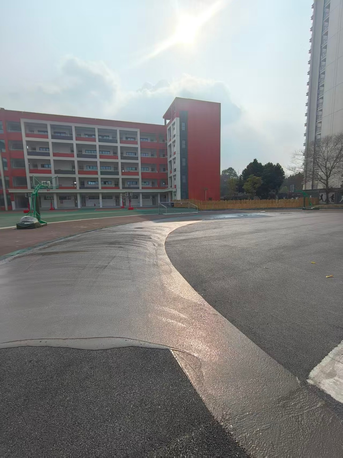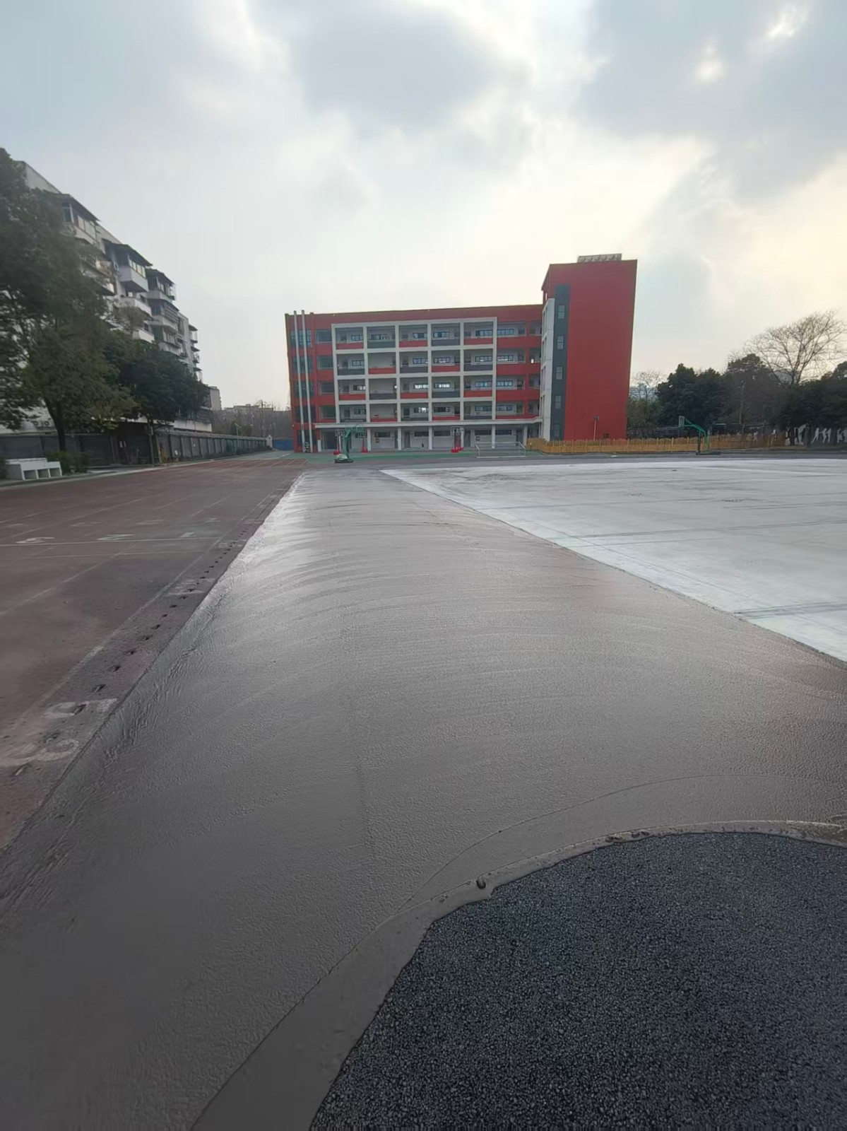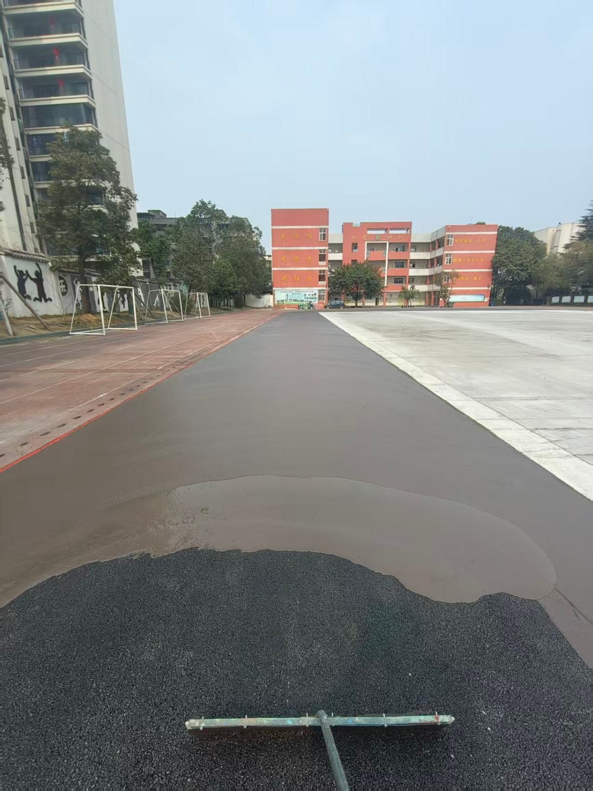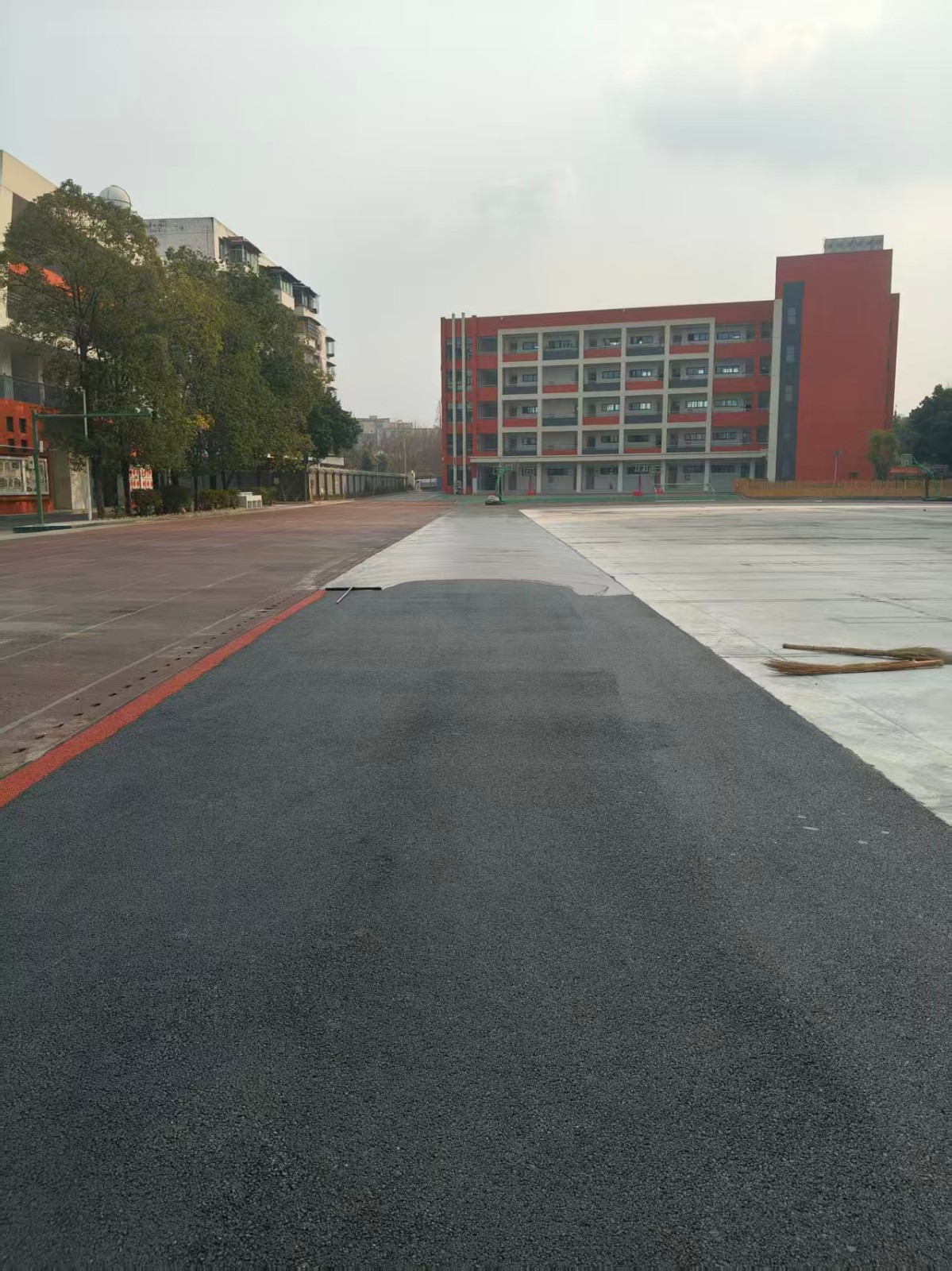 2026年2月4日广汉第四小学运动场轮滑丙烯酸场地封底施工中